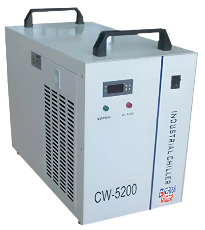 Descubre el poder del chiller CW-5200 de GUERRA Láser, diseñado para brindar un enfriamiento de alto rendimiento a tu máquina de grabado y corte láser. Este chiller cuenta con un sistema de refrigeración por termolisis y está equipado con características innovadoras que garantizan un funcionamiento sin problemas.