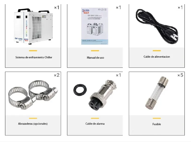 Sistema de enfriamiento o Enfriador de agua industrial cooler 5200 de 1.14HP, 2.64gpm con sistema de refrigeración de agua, enfría 3868 BTU/hora capacidad del tanque 7L para enfriar máquinas laser co2 recomendado para tubos laser co2 de 40W 50W 60W 70W 80W 90W 100W 130W 150W 180W. GENERICO GUERRA LASER ENTREGA INMEDIATA! Acerca de este artículo: - El enfriador de agua 5200 para máquinas de grabado láser de CO2, Potente refrigeración: el enfriador de agua generico 5200 utiliza refrigerante estándar R134a para mantener la máquina de corte y grabado láser hasta 80W-180W bien y fresca durante el uso; su caudal de 2.64gpm y compresor de 1.1hp enfría hasta 3868 Btu por hora. -1400 W Capacidad de enfriamiento opcional; Medio Ambiente refrigerante; Tamaño compacto, larga vida de trabajo y sencilla de operación; ± 0.3 & # x2103; Precisión Control de temperatura; - Depósito de agua de gran capacidad: el tanque de agua de 7 litros cuenta con un diseño cerrado para reducir la evaporación del agua y proporcionar un largo servicio entre rellenos; la escala de precisión muestra el nivel de agua; fácil de observar y saber cuándo se necesita llenado de agua - El driver de temperatura tiene 2 modos de control inteligente, aplicable a diferentes ocasiones aplicado; con diversas funciones de ajuste y la visualización; temporización compresor de múltiples funciones de alarma: Compresor de protección, protección contra subidas, flujo de agua Alarma y más de alta/baja temperatura alarma; - Varias Especificaciones de alimentación; CE; RoHS aprobación opcional; Calentador y filtro de agua. - Único ajuste automático control de temperatura inteligente: en diferentes medio ambiente, no necesita de usuario a cambiar debido a que se cambia automáticamente a la temperatura adecuada. - Materiales de alta calidad: puertos de entrada y salida de agua hechos de latón diseñado con precisión, tiene resistencia a la corrosión a largo plazo; mango amigable y red personalizada a prueba de polvo; ventiladores de refrigeración duales, alta capacidad de disipación de calor - Control preciso de temperatura: los enfriadores de agua industriales originales Guerra laser tienen control de temperatura de modo dual (automático e inteligente), puede mantener la temperatura constante dentro de 0.3 °F; modo de temperatura constante e inteligente; ajusta automáticamente la temperatura de acuerdo a la temperatura ambiente interior; ajusta manualmente la temperatura entre 5 y 40 grados. - Seguridad operativa: nuestros enfriadores de agua tienen múltiples funciones de protección y alarma, alarma automática en caso de flujo anormal; si la temperatura del agua de trabajo es demasiado alta, dará una alarma automática; protección contra sobre corriente del compresor: protege la estabilidad de la refrigeración - La marca GUERRA LASER tiene una línea de producción a gran escala y estandarizada, y distribuye mejores componentes de control como evaporadores y condensadores de chapa metálica, con una baja tasa de fallos. Especificaciones: Modelo: 5200 Clase: Generico Función: Enfriamiento por agua Voltaje de entrada: 220vac o 110v (según selección) Frecuencia: 60 Hz Protección: Alarma de flujo Corriente de entrada: 0,3 - 4,7 A Capacidad del tanque: 7 Litros Altura de bombeo máxima: 12m Flujo máximo: 10L/min Entrada y salida: Conector de latón OD de 10 mm Capacidad de enfriamiento: .23 ton Dimensiones: 55x28x43cm Peso: 28 kg Potencia del compresor: 0,81 hp Capacidad nominal de refrigeración: 1.64 KW Carga del refrigerante: 280 g Precisión de temperatura: 0,3 grados centígrados /0,3 grados Fahrenheit Reductor: Capilar Potencia de la bomba: 0,03 kW
