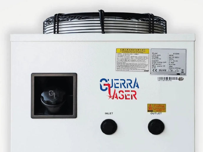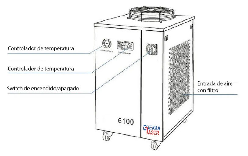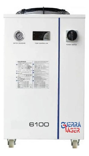Sistema de enfriamiento o enfriadores de agua industriales CW-6100 capacidad de enfriamiento 4200W GUERRA LASER ORIGINAL! Los sistemas de enfriamiento o enfriadores de agua industriales GUERRA LASER 6100 tienen un excelente rendimiento de refrigeración, son aplicados para enfriar tubos láser de vidrio de co2, tubo láser de RF de metal co2, láser semi conductor, láser de estado sólido, láser de fibra o el husillo CNC.