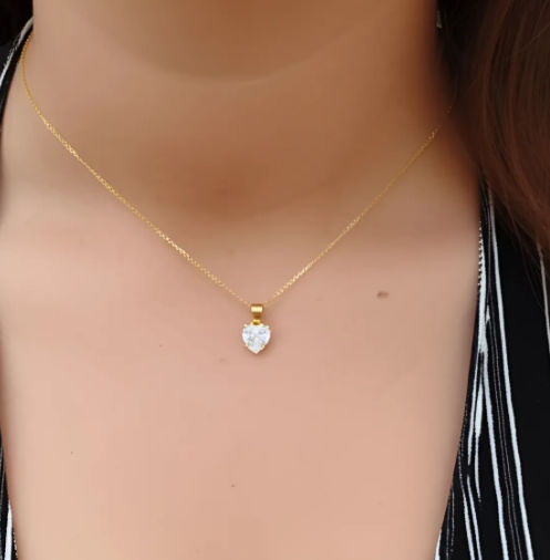 Dije De Oro Solido De Corazon Con Zirconia De Corazon