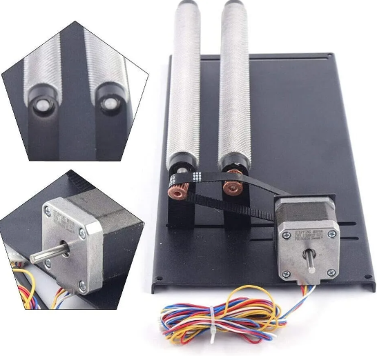 PARA MAQUINAS LASER CO2 Este Rotary 360º tiene un sistema de funcionamiento tipo torno con una excelente sujeción, es un accesorio rotativo para tu máquina láser co2 agregando capacidad de procesamiento para grabar sobre superficies cilíndricas. El accesorio giratorio puede ajustarse al tamaño de forma rápida y sencilla para una amplia variedad de productos como cristal, tazas, botellas, linternas, etc. No se necesitan controladores de motor ni fuentes de alimentación adicionales. simplemente necesita desconectar su motor del eje y conectar el rotary. Material: Plástico y aluminio Longitud: 30 cm Diámetro: 15 cm Motor: Nema 17 Incluye: Eje rotatorio cilíndrico Motor Recomendado para maquias 40x60cm para abajo Nota : Contamos con 6 modelos diferentes de Rotativos para todas las necesidades . Da click en COMPRAR, Recibiras Un GRAN Producto .... GUERRA Laser